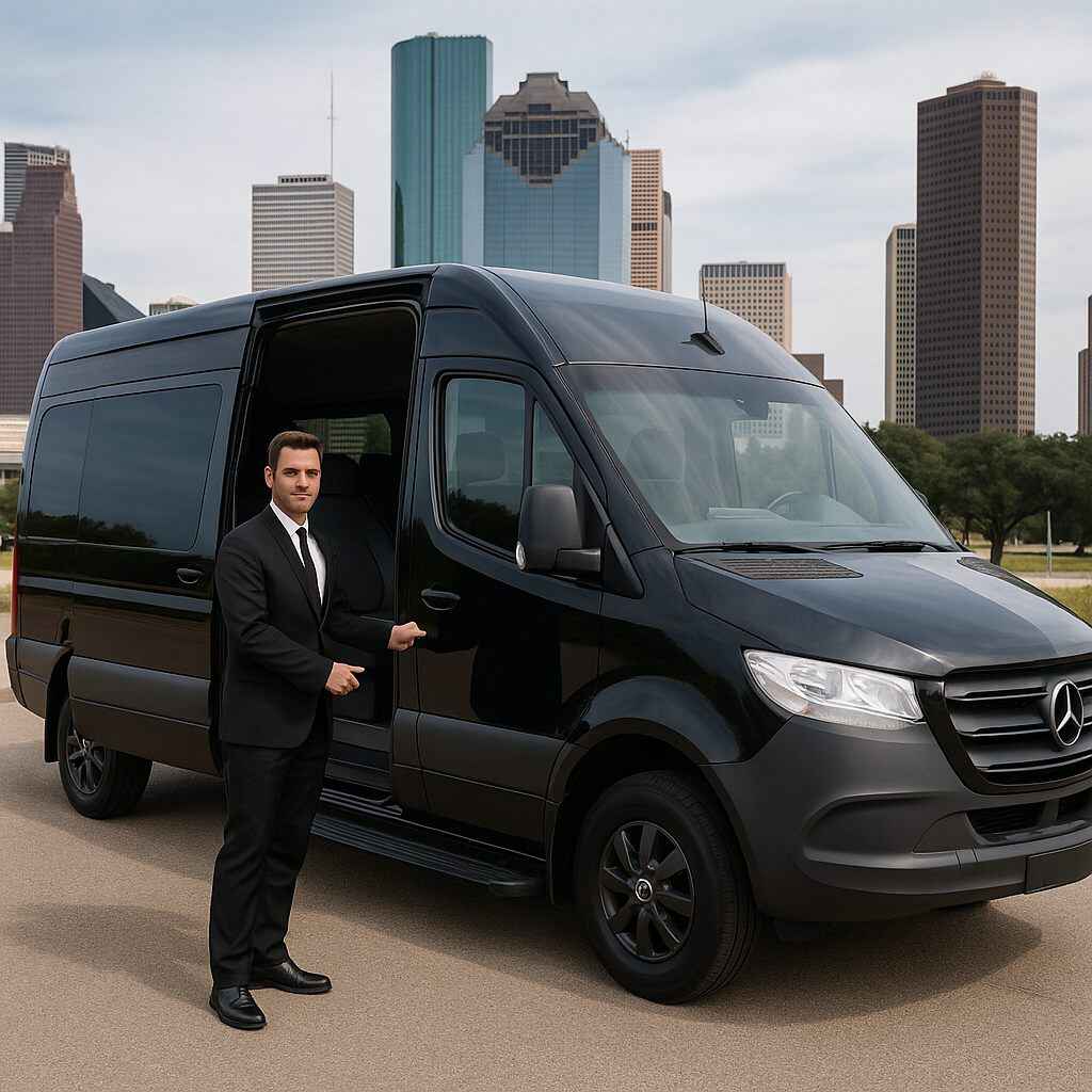 Upgrade your corporate commute with a premium Houston Sprinter van service equipped for comfort and privacy.